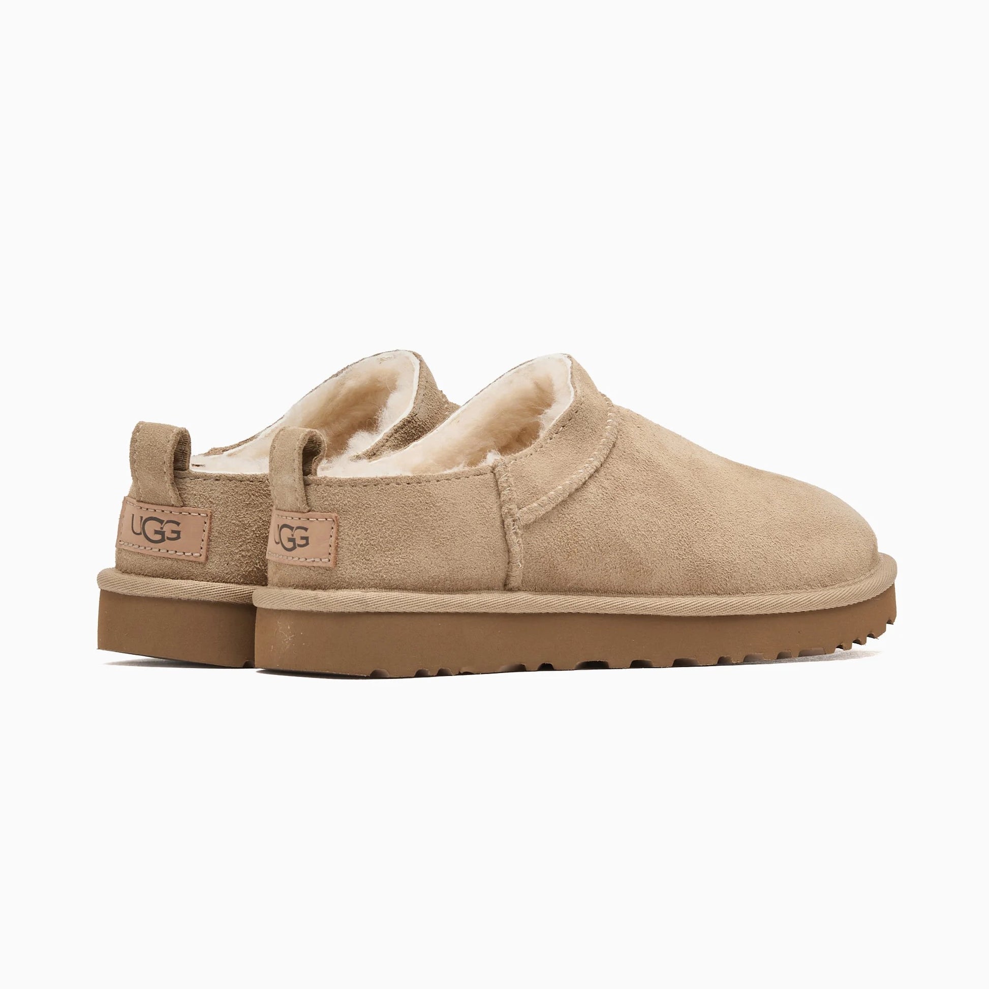 - Woven label with The UGG® Logo on insole, The UGG® Logo embossed leather heel label