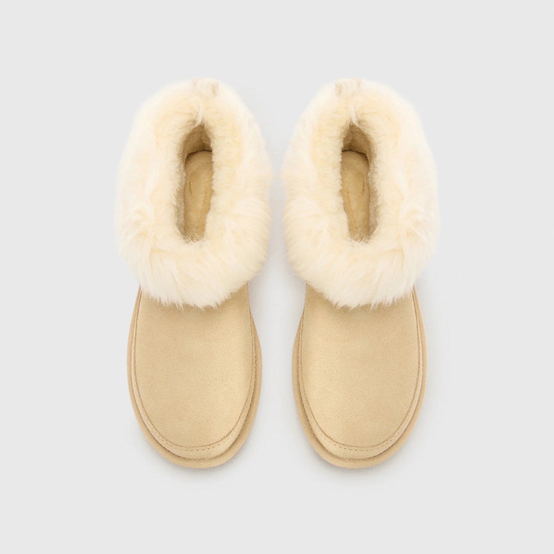 - Rear pull tab, Suede heel counter, Suede mudguard, Sheepskin trim